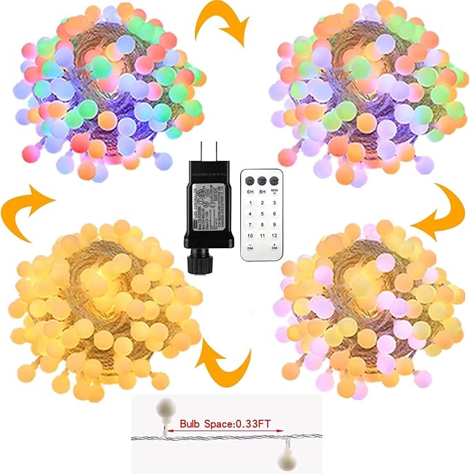 - 4 in 1 Color Changing String Lights: Plug in String Lights can switch freely between Warm White and Multicolor, 200 LED 115ft(98.6ft String Lights,16.4ft Lead Wire), You would like the multiple display options and being able to have either all warm white, all color, or both together.