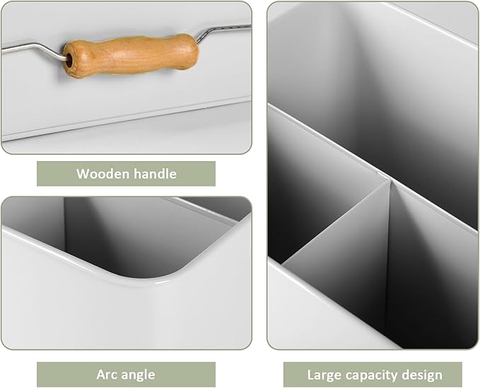 Metal Garden Tool Caddy, 3 Compartments Garden Tool Organizer with Handle, Garden Tool Box for Indoor and Outdoor, Gardening Tool Kit Holder Empty, Gardening Supplies, Gardener Gift (White)