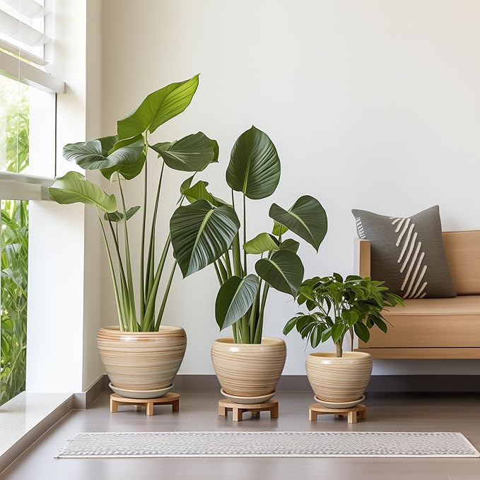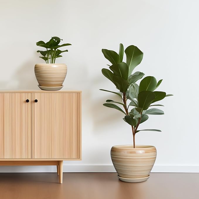 - Different Sizes: The large planter pot (10" D X 7" H), medium planter (8" D X 6" H), and small plant pot (6" D X 4.5" H). This planters set fits olive tree, snake, bonsai, money tree, monstera, alocasia, pachira aquatica, ficus lyrata, palms, and more