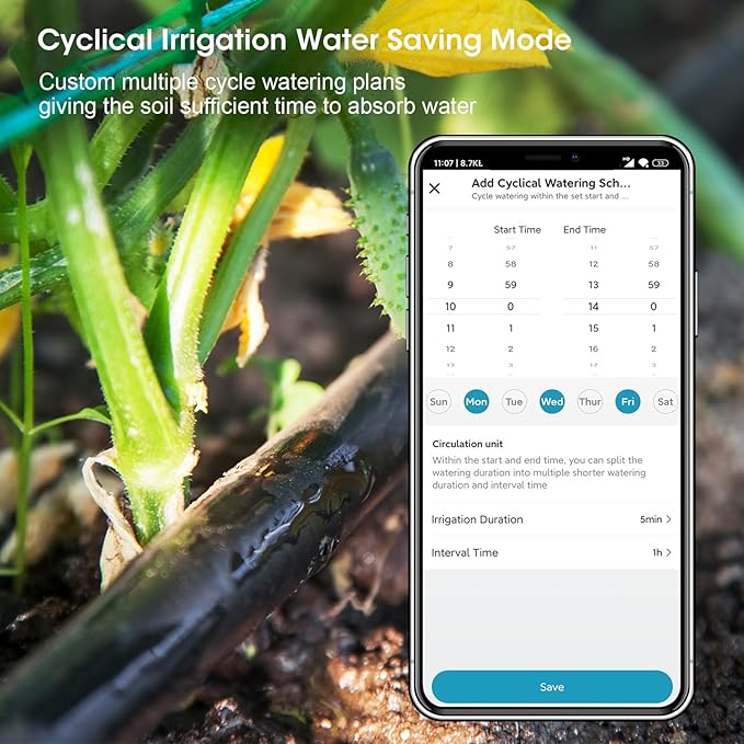 - Manual Watering & Rain Delay: Manual mode allows for on-demand watering at customizable times up to 23 hours 59 minutes without affecting scheduled irrigation. Rain Delay pauses scheduled watering for 1-7 days before resuming automatically.