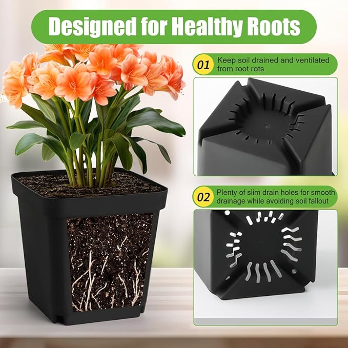 - 【 Excellent Drainage Hole Design】Each square seedling pot features drainage holes that promote proper water flow, preventing overwatering and root rot while encouraging healthy root growth for stronger plants.