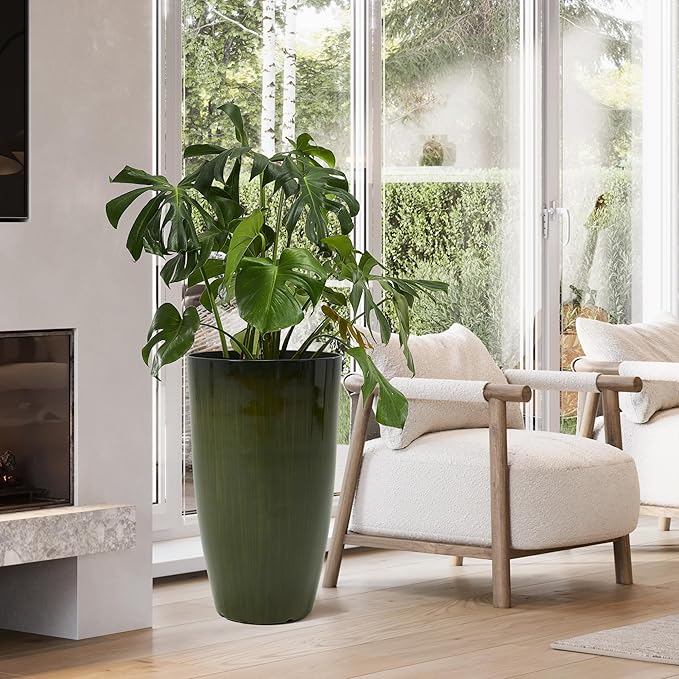 - DURABLE DESIGN: Made of weather-resistant plastic, these planters can withstand rain, sun and other outdoor elements while retaining their vibrant color and shine; These large plant pots are lightweight yet sturdy for indoor or outdoor decorative use