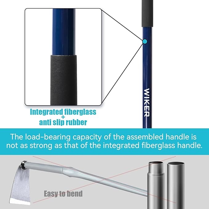 - Sturdy Tool:If you are tired of wooden handled hoes breaking or separating from the metal,please choose this fiberglass handled garden hoe with anti slip protective cover.It has high strength,toughness,and is not afraid of sun exposure and wind and rain invasion,and can last forever as a gardening tool.