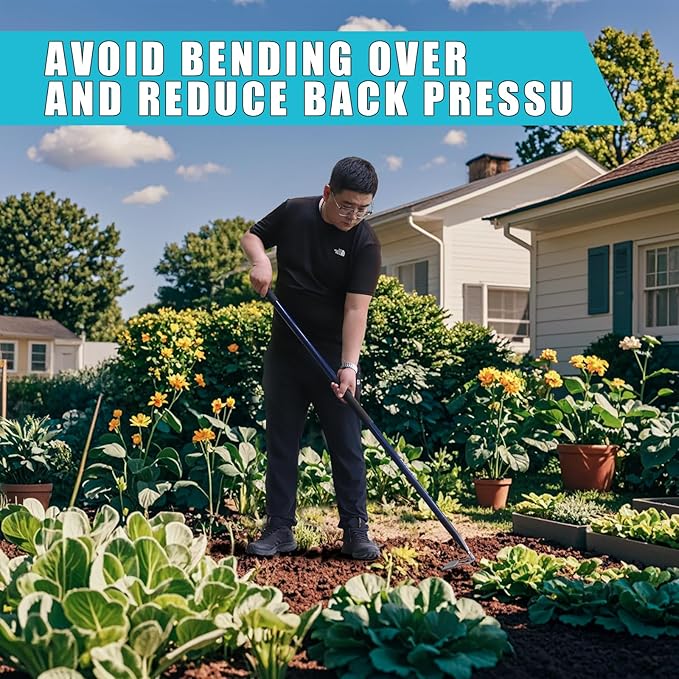 - Light Weight:The overall length of the hoe is 57 inches,Sturdy,well made,and lightweight is its advantage.It weighs only half of a traditional hoe and will not be a burden on you during weeding.Even the elderly can easily handle it,making it an essential gardening tool.