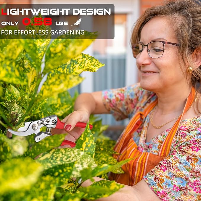 - FEMALE & ELDERLY-FRIENDLY: The ergonomically designed, non-slip rubber handles reduce hand fatigue and ensure a comfortable, stable grip. The cushioned design minimizes wrist and hand strain, making these pruners ideal for long use and for those with arthritis or anyone needing extra comfort