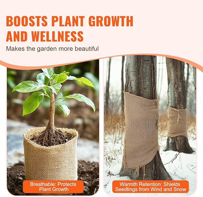 - Widely Used for Home and Garden: Made from natural jute plant, the fibers are woven, durable, breathable, thick that could be widely used and perfect for your home decoration, creative DIY crafts and outdoor gardening projects, including handicrafts, weddings or parties décor, landscape burlap, plant winter covering, tree wrap rolls for shrubs, fruit trees, plants transplant and protection, landscaping needs, agriculture, soil erosion control blanket, weed barrier, sackcloth, etc.