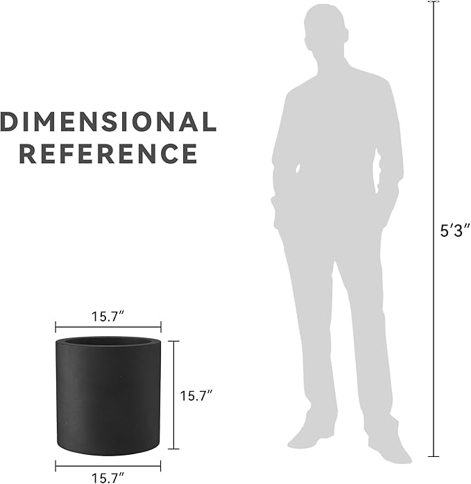 Kante 15.7" Dia Round Concrete Planter, Modern Style Large Cylindrical Plant Pot with Drainage Hole and Rubber Plug for Indoor Outdoor Patio, Black