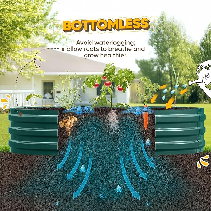 - 【Safe Rolled Edges】The edges of the metal raised garden beds are meticulously crafted with a rolled edge process, eliminating sharp edges to ensure your hands stay safe from cuts during assembly and planting, letting you safely enjoy the pleasure of gardening.