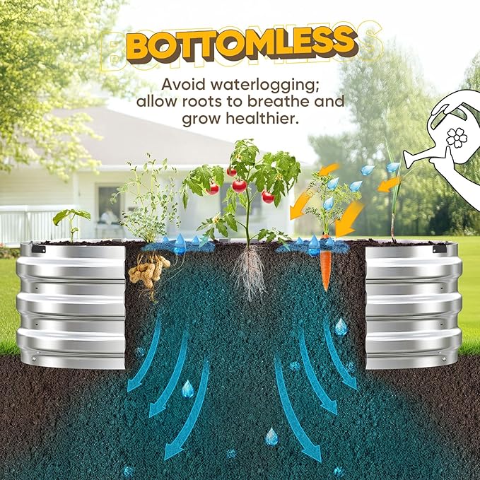 - 【Safe Rolled Edges】The edges of the metal raised garden beds are meticulously crafted with a rolled edge process, eliminating sharp edges to ensure your hands stay safe from cuts during assembly and planting, letting you safely enjoy the pleasure of gardening.
