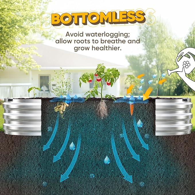 - 【Safe Rolled Edges】The edges of the metal raised garden beds are meticulously crafted with a rolled edge process, eliminating sharp edges to ensure your hands stay safe from cuts during assembly and planting, letting you safely enjoy the pleasure of gardening.