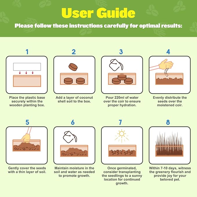 - ⏳ Fast & Easy to Grow – Sprouts in Days!: Simply hydrate the soil, plant the seeds, and watch sprouts appear in 3–7 days! Our high-germination seeds grow lush grass (up to 4–6”) within 1–2 weeks—purrfect for impatient kitties!