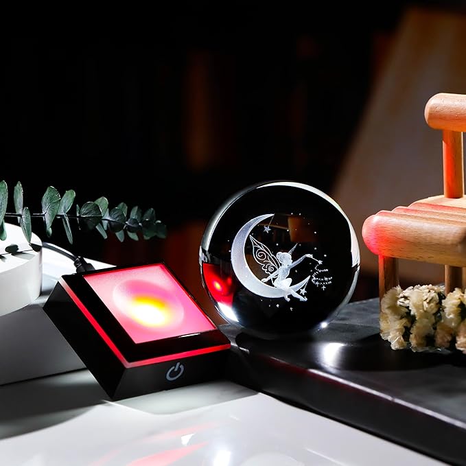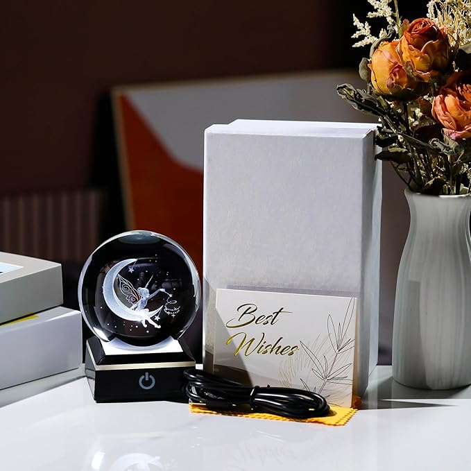 - Moon Fairy 3D Crystal Ball Laser Engraved Fairy Glass Ball Fairy Night Light Decorative Globes 3D Crystal Moon Sphere Fairy Gifts for Girl Her Fairy Lover