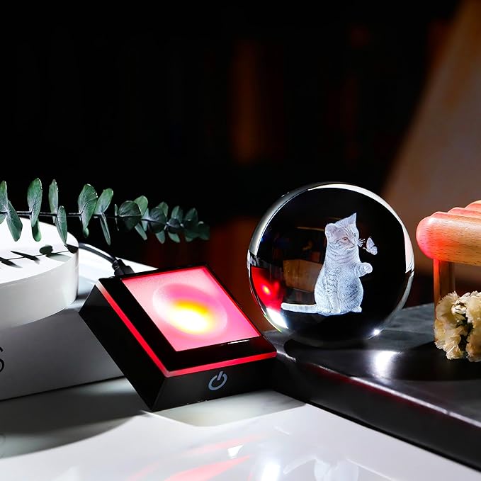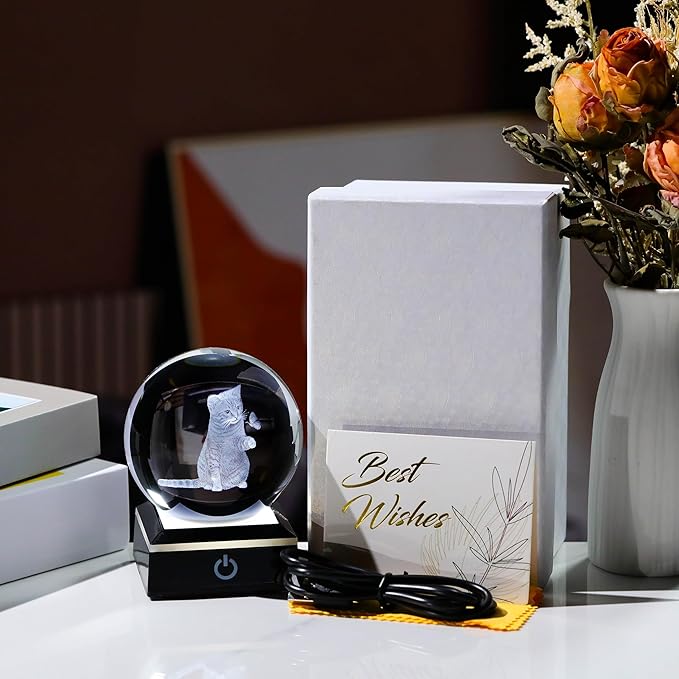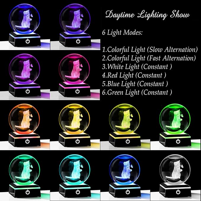 - 🍀Crystal Ball Cat Lamp- Crystal Glass Cat Night Light size: 3.14". Made of K9 Crystal, Interior images are carved by Advanced 3D Laser Engraving Technology.