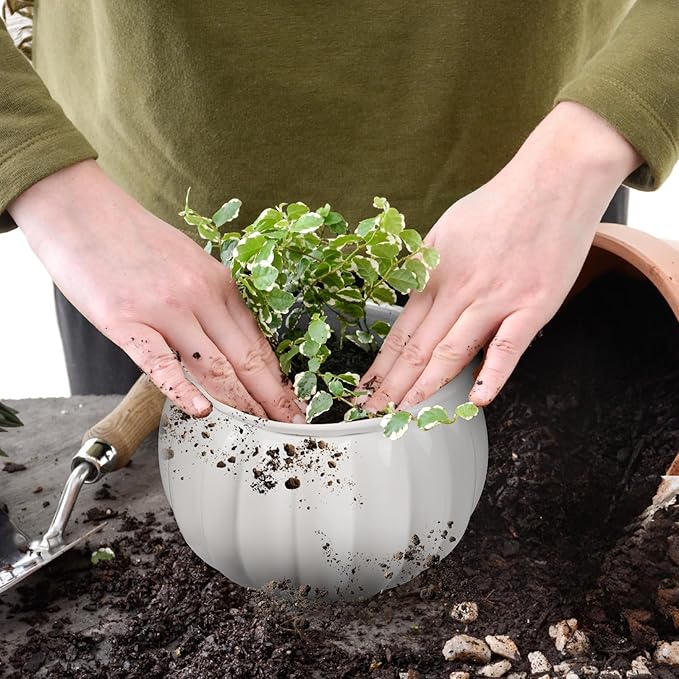 - African Violet Ceramic Planter – Functional and Stylish: This dual-layer self-watering ceramic planter is designed for African violets. Its unique pumpkin shape adds a creative touch to your space, perfectly combining decoration with practicality. An ideal choice for indoor flower pots, this planter makes a stylish addition to any home or office décor