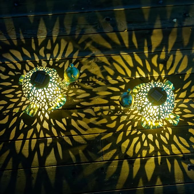- Package Included: 2 x outdoor solar lantern. Due to the handmade nature of our products, the placement of each turtle's head and limbs may vary slightly. The outdoor lanterns for patio you get will be irreplaceable