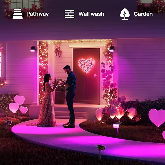 - 2-in-1 Installation Lights & Widely Used colored Lights: The installation of the colored solar lights is very convenient, you can use stakes directly into the ground, or screw the installation on the wall according to your needs. Linkind colorful lights are suitable for everyday garden arrangements, parties, or various festivals such as Halloween, Christmas, and make your garden more gorgeous.