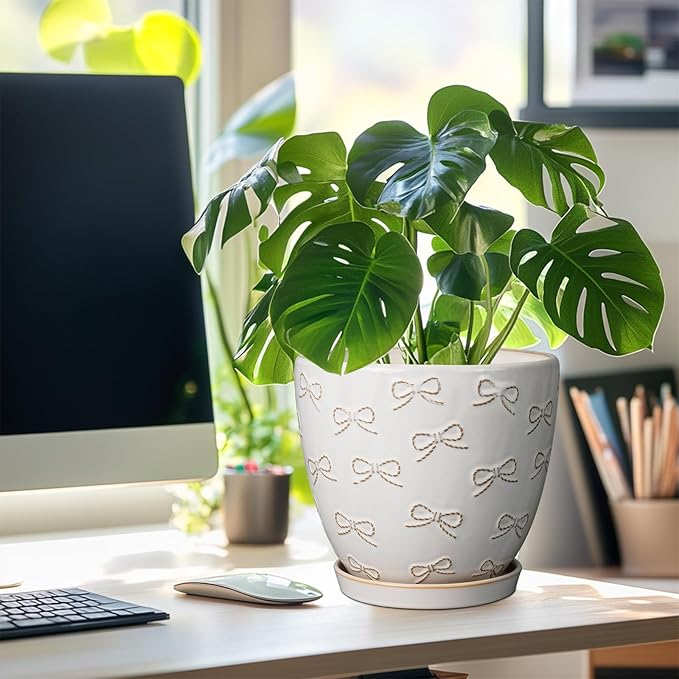 - Stylish Appearance: Our ceramic planter has a white main colour, a beautiful embossed bow tie pattern on the surface, elegant appearance making it ideal for home decor, garden decor and office decor