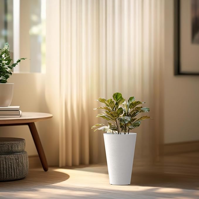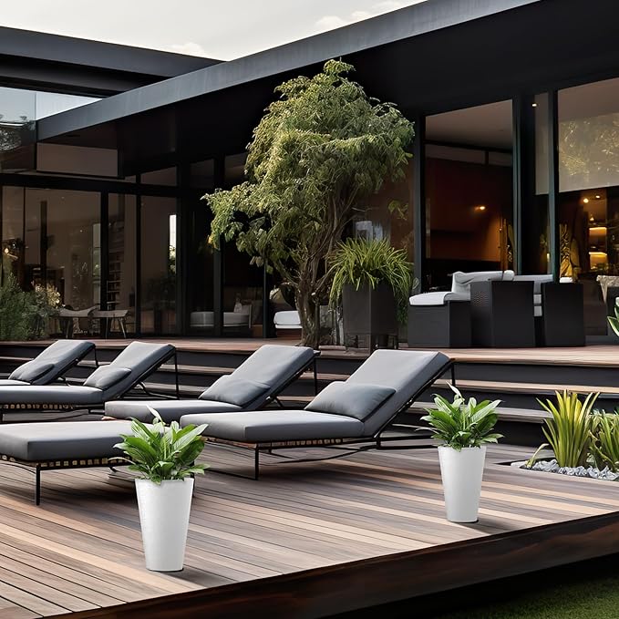 - Minimalist Chic - Elevate your space with these tall and wide planters, embodying sleek lines and a contemporary White finish—a defining trend in modern landscape design. The textured surface introduces an artistic touch to your garden, patio, office, living room, or front door area.