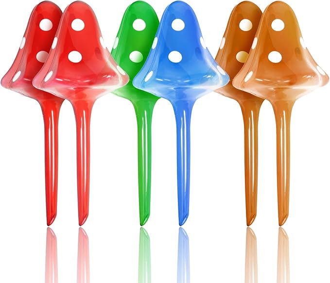 - 🌻PLANT WATERING SPIKES WHILE AWAY:No more worries about your plants when you're on vacation,traveling,business trip,any scenario where you need to leave the house. You can adjust the number of mushrooms placed,the angle of tilt,etc depending on how long you are away from home. Suitable for different plants. Like bonsa,pot plants,hanging plant,any outdoor&indoor plants.