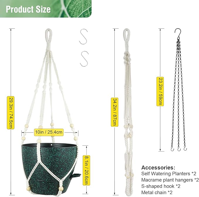 - 【Self-Watering Hanging Planter with Removable Tray】This hanging flower pot comes with a detachable bottom tray that acts as a water reservoir, holding a good amount of water. When your plant needs water, it’s absorbed through cotton wicks from the reservoir to the soil, reducing how often you need to water