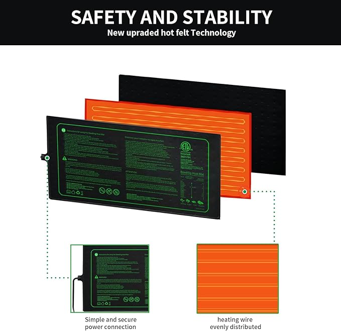 - Durable & Waterproof - This heat mat is made with waterproof, flexible and long-lasting material and SPT-2 5.9ft safety power cord. Easy to clean and maintain