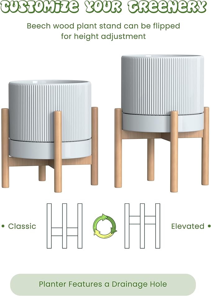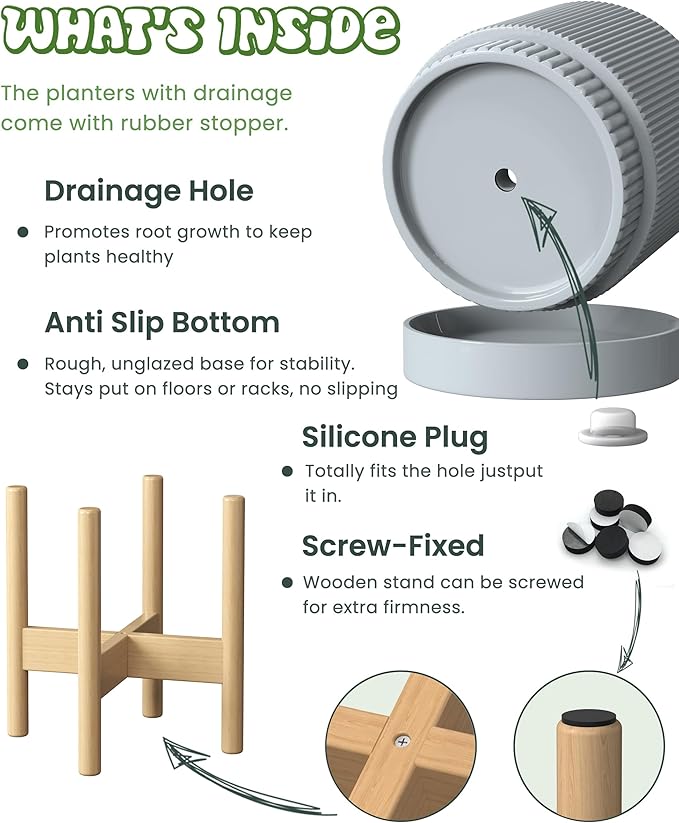 - Complete set includes - Ceramic pot with drainage, saucer, plug, drainage net & beech stand. Well packaged to prevent damage.