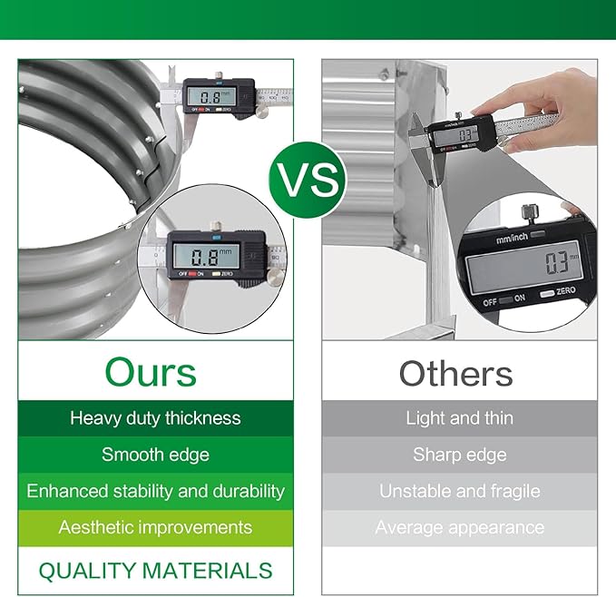 - DURABLE GALVANIZED MATERIAL: Gardmax outdoor raised garden beds are made from 0.8mm heavy-duty galvanized material, ensuring exceptional longevity and durability. It is more resistant to high temperatures and freezes, making it very suitable for outdoor use. And this metal will survive the elements for decades, but when you're ready to replace it, the metal is entirely recyclable. (Moreover, the middle support strip provided exceptional strength to our lightweight Galvanized Raised Garden Bed.)