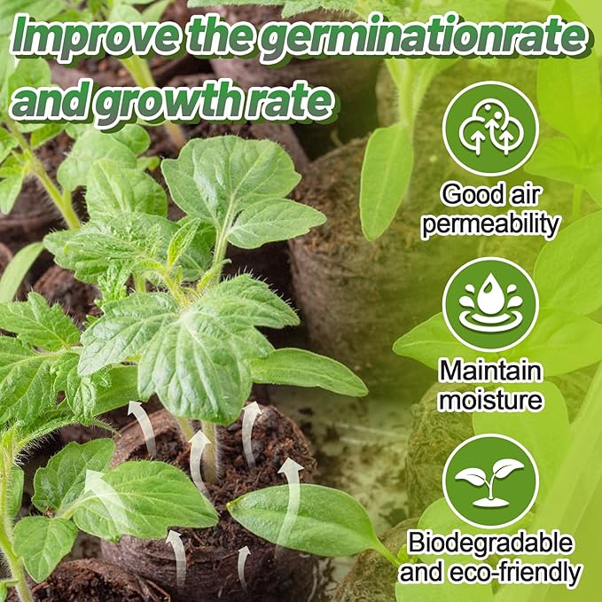 - Natural & Friendly Material: Our seed starting pellets are crafted from peat, offering robust air permeability, water retention, and rich nutrients that support robust plant root growth. The outer non-woven material is fully degradable. Compact and small, it expands with water, ensuring convenient and clean storage.