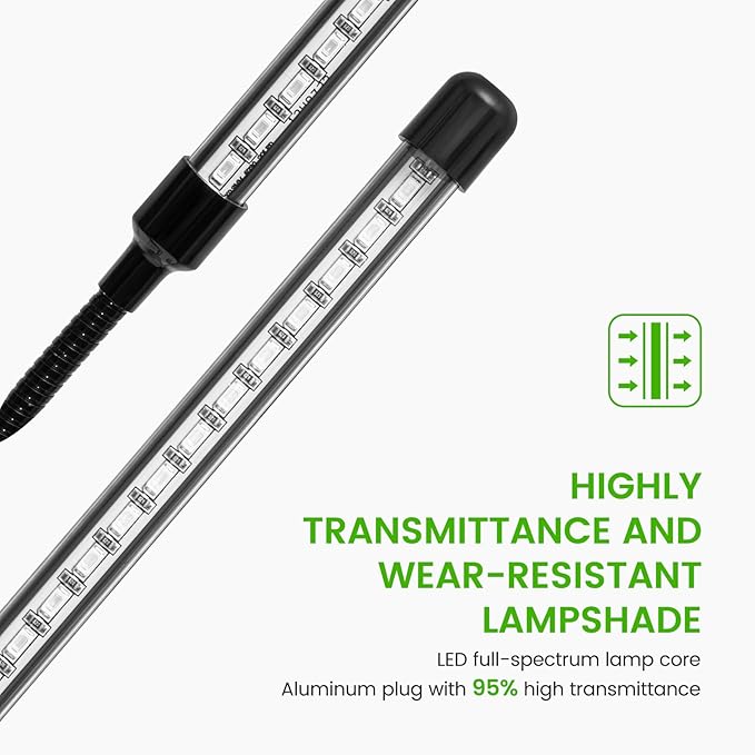 - EASY TO INSTALL: No matter how many grow lights there are, they are equipped with flexible goosenecks and sturdy clips, which not only allow you to place the grow light in any direction, but also provide the best lighting angle for your plants and coincide with the cover around the plants
