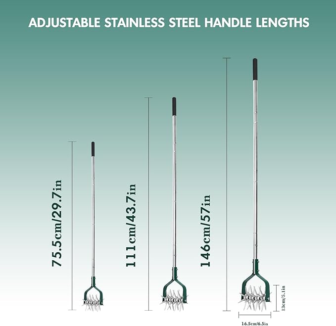 - Long Handle Design : Tiller for gardening has an adjustable handle: 29.7 inches, 43.7 inches, 57 inches, ergonomically designed and easy to hold,