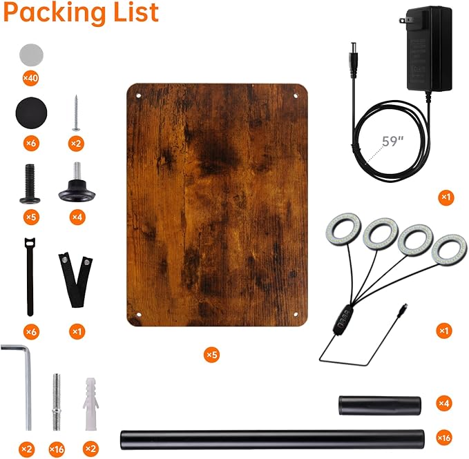 - Easy Assembly - Assembly is straightforward with provided tools and clear instructions. Each component, including wooden boards, screws, and metal rods, is clearly labeled for hassle-free setup. Includes 4 foot pads for added stability and cable ties for a tidy appearance