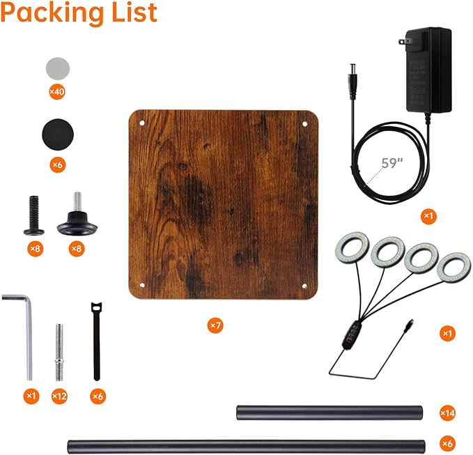 - Easy Assembly - Assembly is straightforward with provided tools and clear instructions. Each component, including wooden boards, screws, and metal rods, is clearly labeled for hassle-free setup. Includes 4 foot pads for added stability and cable ties for a tidy appearance