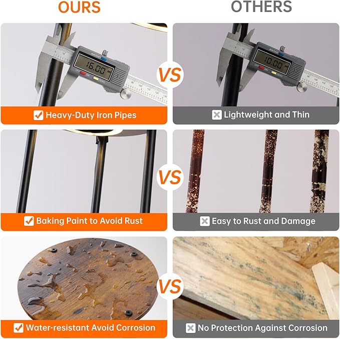 - Sturdy Construction - This flower stand frame is constructed with sturdy metal rods and thick wooden boards. It features 0.62-inch heavy-duty iron pipes, ensuring excellent stability, with a specially coated surface to prevent rust. The lighted plant stand are made from 0.47-inch thick MDF boards, providing strong support and featuring a waterproof coating to prevent warping, curling, and wear