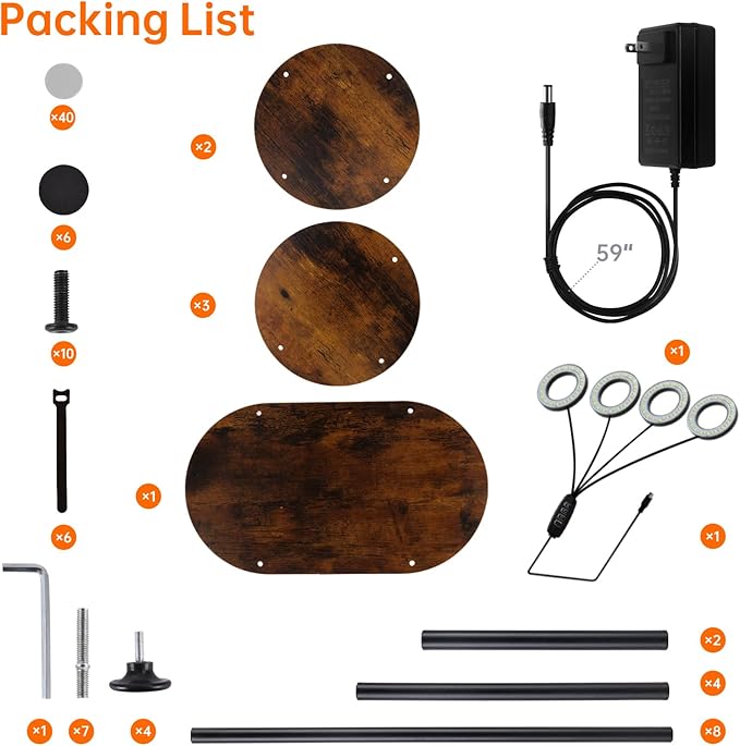 - Easy Assembly - Assembly is straightforward with provided tools and clear instructions. Each component, including wooden boards, screws, and metal rods, is clearly labeled for hassle-free setup. Includes 4 foot pads for added stability and cable ties for a tidy appearance