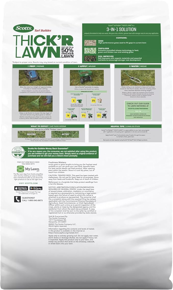 - Get up to a 50% thicker lawn with just one application (subject to proper care; results may vary based on current condition of lawn)