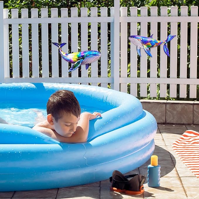 ULENDIS 2 Pack Metal Whales Wall Decor, Bright Color Nautical Metal Fish Wall Art, Wall Hanging Decorations Ocean Theme Outdoor Wall Decor for Patio Garden Yard Pool Fence