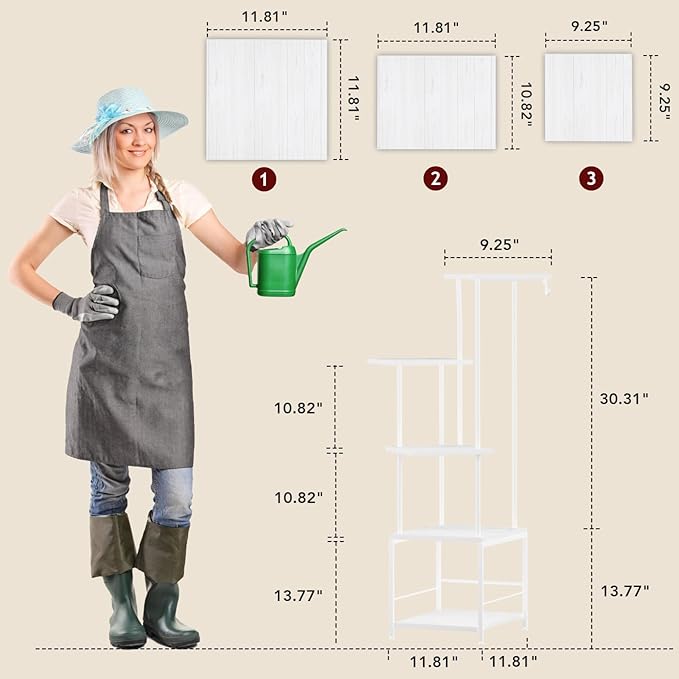 - [Spacious 5 Tiers] This tiered plant stand offers 5 levels of storage, allowing you to showcase a variety of plants in different heights and styles. The bottom tier features a protective railing to secure pots, while the middle tier includes a side plant holder hook, perfect for hanging baskets. Whether you’re decorating a plant rack indoor or adding greenery to a cozy corner, this stand provides ample space without taking up too much room, making it a must-have for corner plant stands for indoor plants