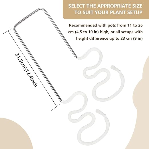 - Size and Material: we offer small and medium sizes to choose from; The wick is 1.2 meters long; The stainless steel plant automatic watering device with self watering capillary wick cord is made of durable metals and recycled cotton