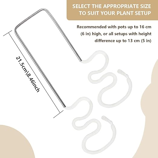 - Size and Material: we offer small and medium sizes to choose from; The wick is 1.2 meters long; The stainless steel plant automatic watering device with self watering capillary wick cord is made of durable metals and recycled cotton