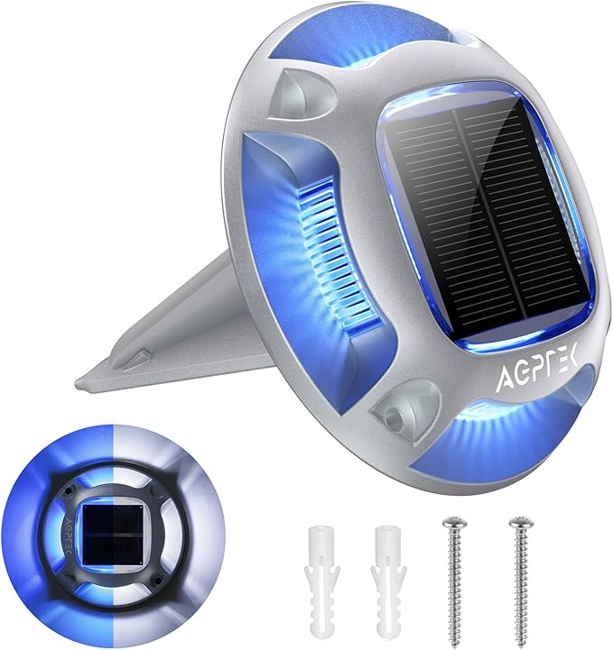 - 【2 Colors In 1】 Blue Light & White Light, Two Color Options for you to choose. Unlike other single color solar deck lights, dual-color driveway lights let you can freely choose color to fits different needs, like holiday decoration or daily used.