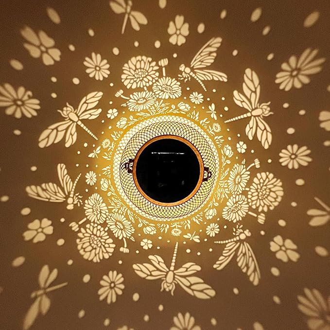 - Graceful Decorative Design - The retro appearance, with gold copper color and hollow out metal veneer, the solar outdoor lanterns casts bright and warm light in darkness, accompanied by gorgeous and graceful dragonfly patterns, adding a beautiful atmosphere to the surrounding environment.