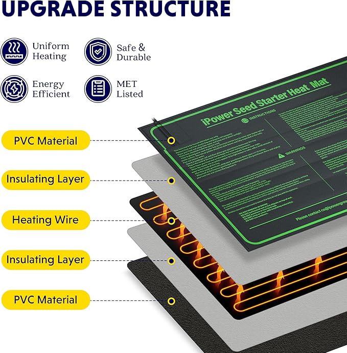 - Stable and uniform heat: the thickened heat conducting wire is evenly laid on the heating pad the heat conduction is fast and the temperature is balanced, to avoid the uneven temperature of the heating pad to damage the seed germination.