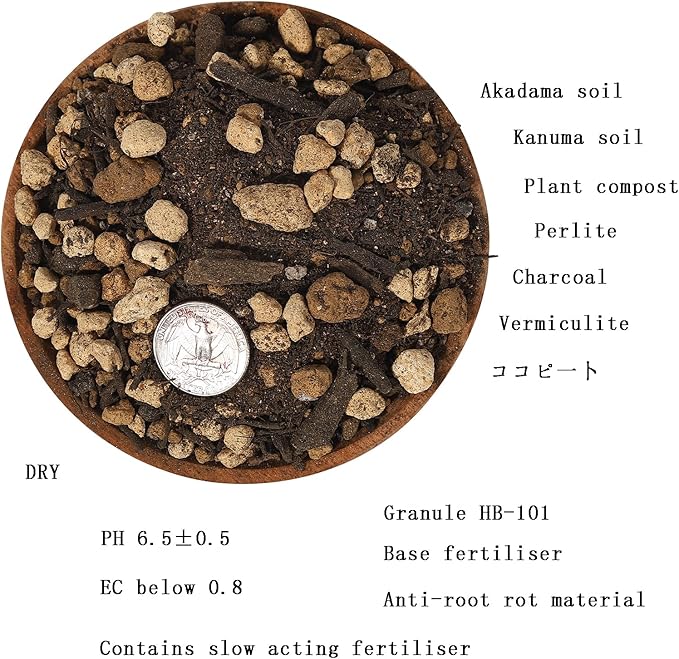 - READY TO USE - A blend of 7 soil and mineral media with slow-release fertilizers, basal fertilizers, anti-root rot materials, and “Granule HB-101”(a soil additive for agricultural use and domestic use which stimulates the action of microbes already present in soil and aerate it and allow more complete absorption of fertilizers