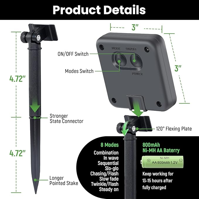 - Customizable Modes: Adapt the ambiance to fit every occasion with 8 distinct lighting modes. From a gentle twinkle reminiscent of starlit skies to a steady warmth that sets the stage for tranquil evenings, our solar string lights outdoor are equipped with a smart memory function that recalls your preferred setting, casting the perfect mood night after night.