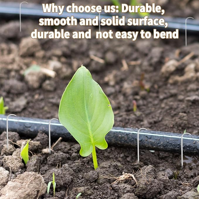 - Versatile: This landscape irrigation pile is not only a small expert in fixing irrigation droppers, it is also a "versatile". In the landscape layout, it can help you fix the landscape fabric, so that the landscape layout is more regular; If you want to build a wire fence, it can also come in handy to help you secure the fence; In the daily maintenance of the garden, it can also be used to fix the garden fabric and weed fabric, inhibit the growth of weeds, and keep the garden clean.