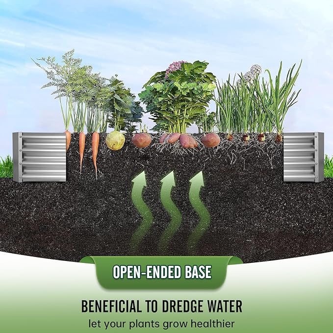 - BUILT TO LAST:THE garden bed is treated to withstand everyday wear and tear due to its 0.6mm thick, galvanized metal sheets and a highly durable zinc coating. Our prime materials ensure the garden bed is sturdy and maintains its shape over time. From heavy rain to extreme heat, we made sure to protect your garden bed from rust and corrosion, so it's the perfect choice if you're looking for a long-lasting solution.