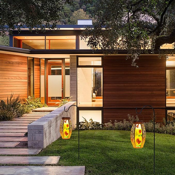 - 【Waterproof & Durable】Sunflower solar lantern has a total height of 13.8” and a width of 6.7”. The entire lantern is made of high-quality materials, and the IP65 waterproof rating ensures that outdoor solar lanterns is not easily rusted or faded, making it suitable for outdoor or indoor use.