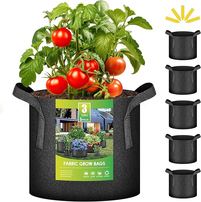 iPower 5 Pack 3 Gallon Grow Bags Heavy Duty 300G Thickened Nonwoven Fabric Plant Pots with 5 Labels & Handles for Outdoor Garden, Aeration Planter Bags for Fruits, Vegetables, Tomato & Flowers, Black
