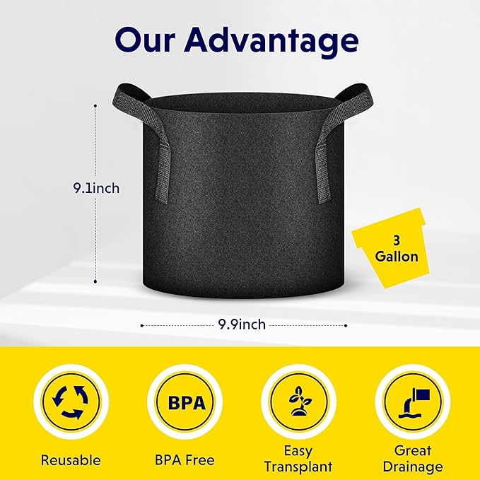 - Sturdy fabric material: Made of 300g thickened nonwoven fabric, these pots are moderately permeable, environmentally friendly and BPA-free. Can be washed and reused for future seasons