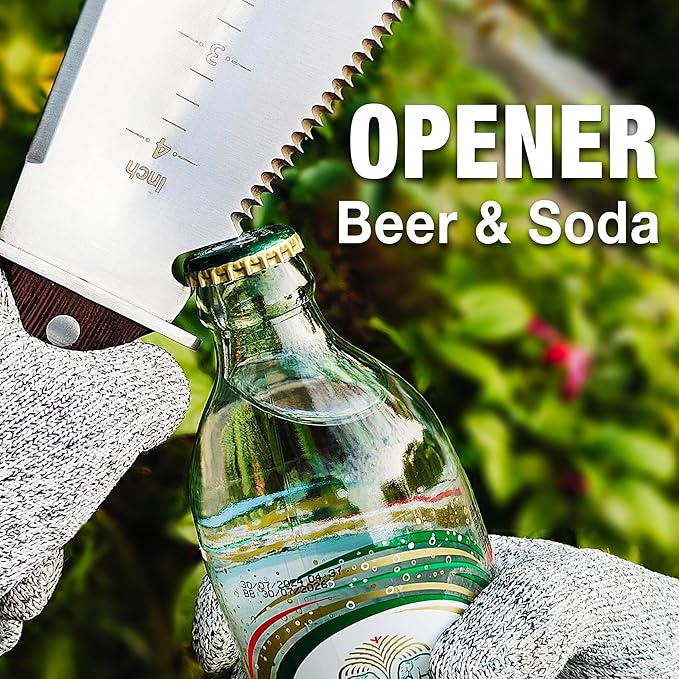 - 4-in-1 Gardening Tool: Combines garden knife, trowel, saw, and bottle opener.